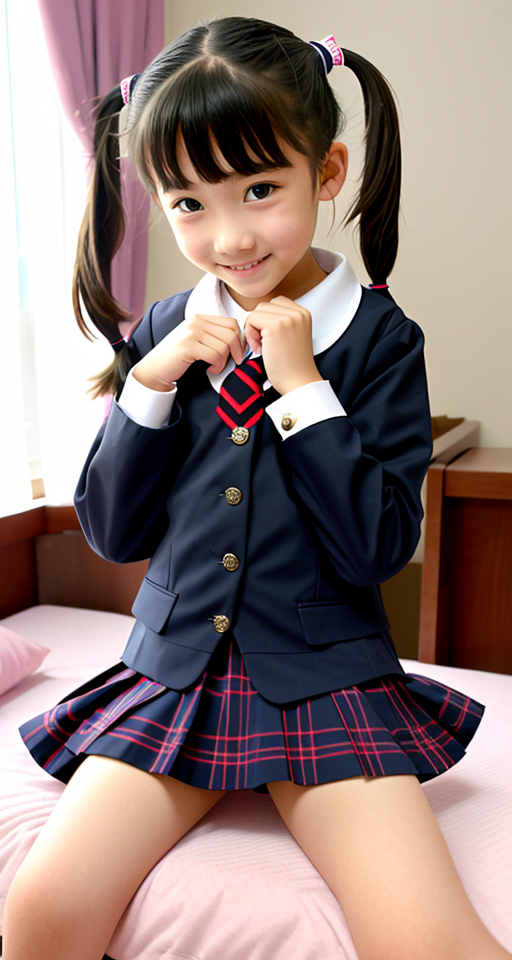ベッド上のツインテール少女、お部屋バージョンです。少し部屋を散らかして生活感を出しました。This is the room version of the twin-tailed girl on the bed. I cluttered up the room a little to give it a sense of life.