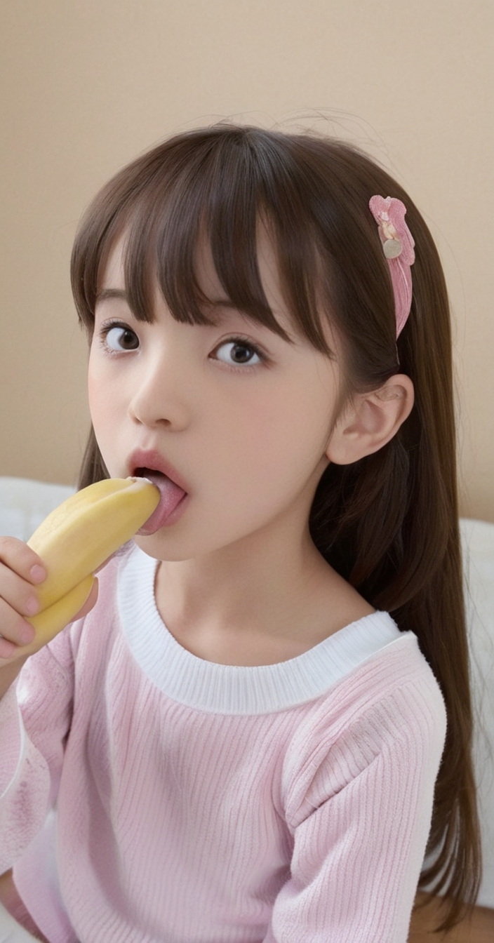 バナナや〇〇を咥えたかわいい女の子達。 Cute girls holding bananas and 〇〇 in their mouths.